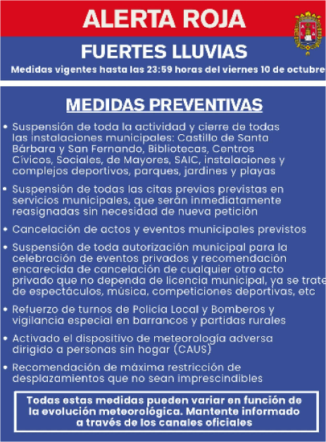 Debido a la alerta naranja por fuertes lluvias en Alicante, y siguiendo las recomendaciones de seguridad, os informamos que:
