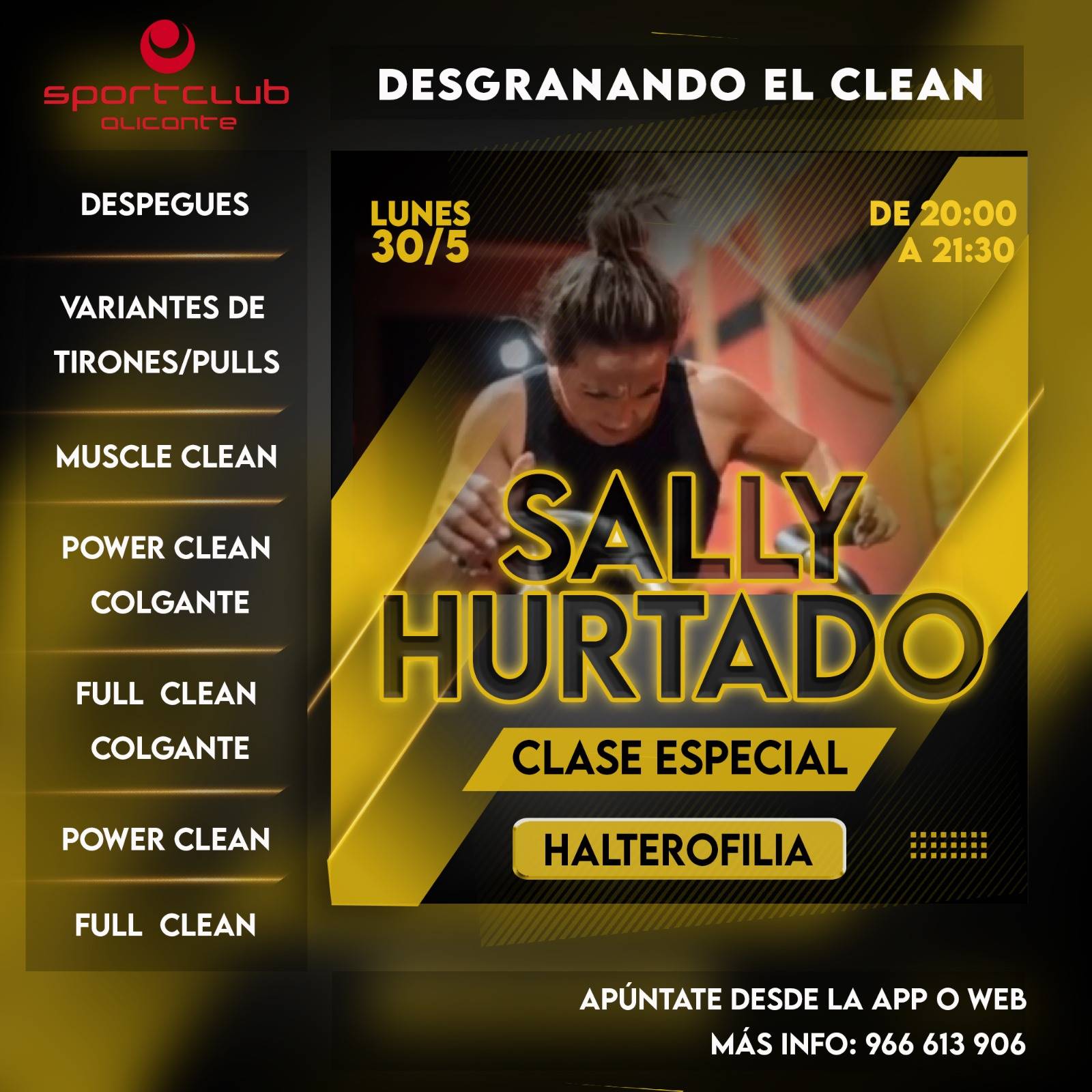 El próximo lunes día 30 de Mayo, tenemos una clase especial de halterofilia con Sally Hurtado.