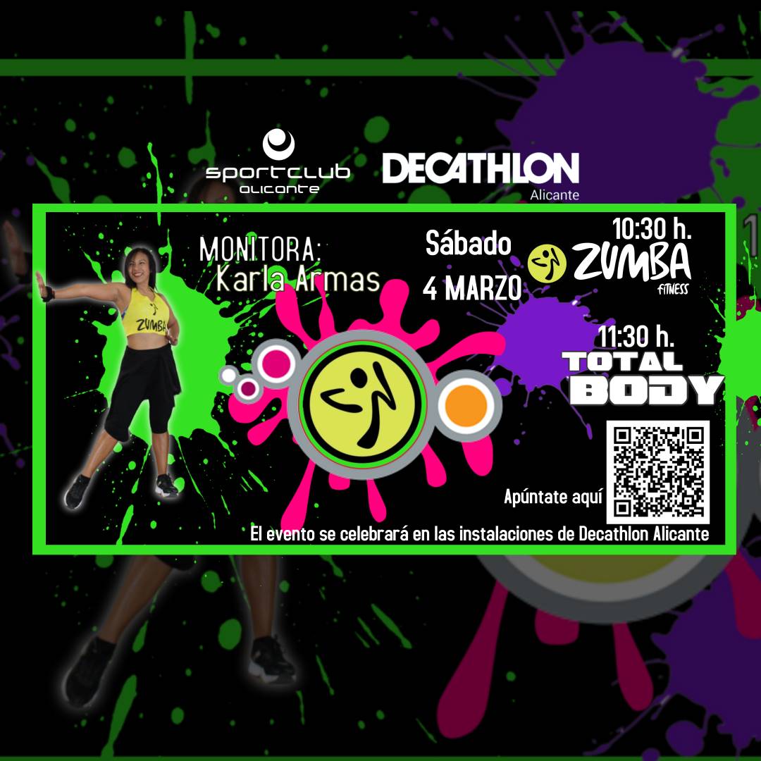 CLASES ZUMBA Y TOTAL BODY EN DECATHLON ALICANTE 27/02/2023 Ven a disfrutar el próximo 4 de marzo de las clases de Zumba (10:30h.) y Total Body (11:15h.) en Decathlon Alicante a cargo de nuestra monitora Karla Armas. La inscripción es totalmente gratuita y debes hacerla desde la plataforma de Decathlon, aquí os dejamos el enlace: https://experienciadeportiva.decathlon.es/evento/clases-de-zumba-y-total-body-alicante-id_30339?gtm_i=2?provincia=Alicante_462 Ponte en forma rodeado de deporte en Decathlon Alicante, os esperamos!!