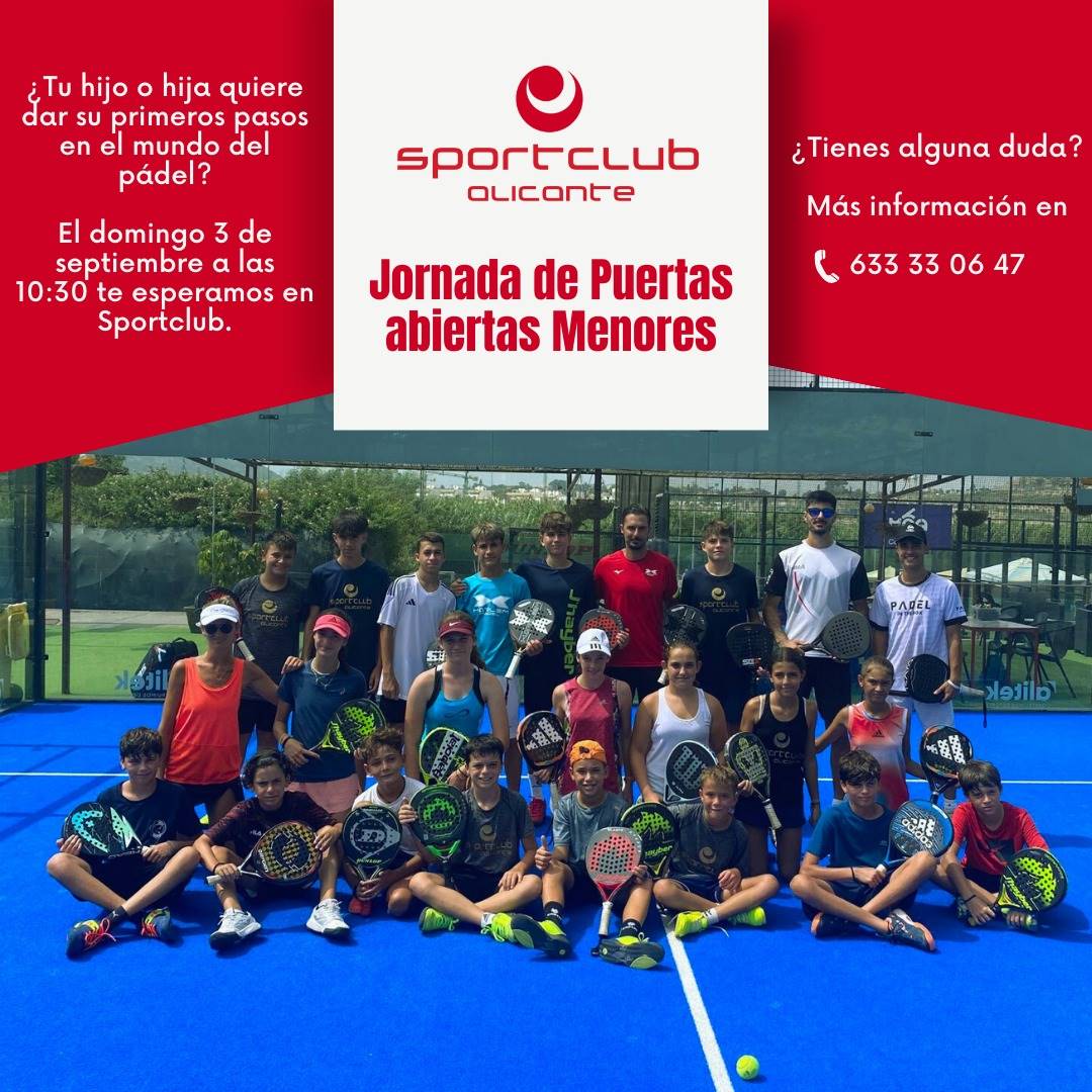 Desde la Academia Pádel Sportclub Alicante os anunciamos que el próximo domingo día 3 de septiembre a las 10:30 tendrá lugar en nuestras instalaciones una Jornada de Puertas Abiertas para la Academia Base y de Precompetición de nuestra Academia.