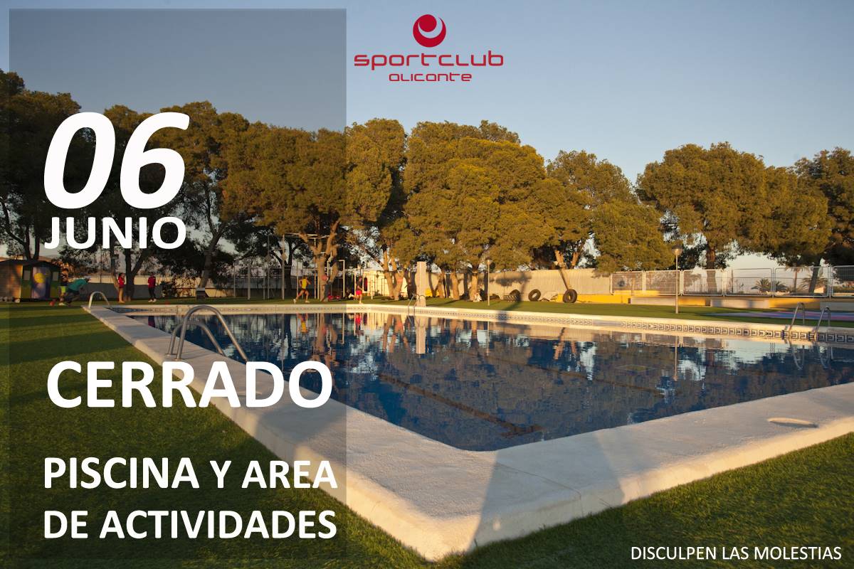 El día 6 de Junio, piscina cerrada 25/05/2021 Por aforo completo, la piscina y zonas de actividades, permanecerá cerrada durante todo el domingo día 6 de Junio.