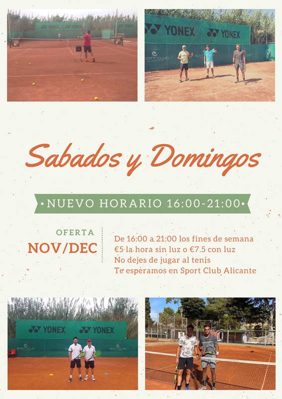 Con el nuevo horario de recepción de los fines de semana por las tardes, estos son los precios para las pistas de tenis